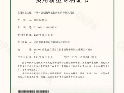 實(shí)用新型專利證書(shū)《一種可強(qiáng)制翻轉(zhuǎn)復(fù)位的水果分級(jí)機(jī)尾部》