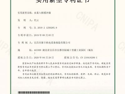 實(shí)用新型專利證書《水果入框緩沖器》