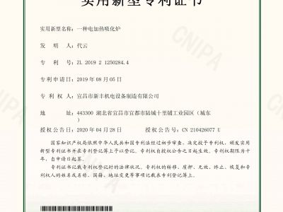 實(shí)用新型專利證書《一種電加熱吸化爐》