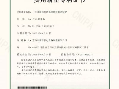 實(shí)用新型專利證書《一種多級(jí)料果篩選滾筒線驅(qū)動(dòng)裝置》