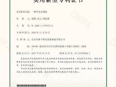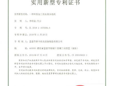 實(shí)用新型專利證書《一種環(huán)形分級(jí)機(jī)》