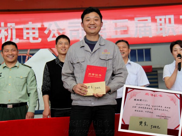 最后,張總為獲得宜都市勞動(dòng)競(jìng)賽“先進(jìn)個(gè)人”稱號(hào)的張雙明同志頒獎(jiǎng)。