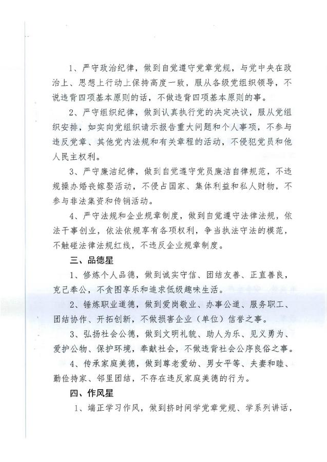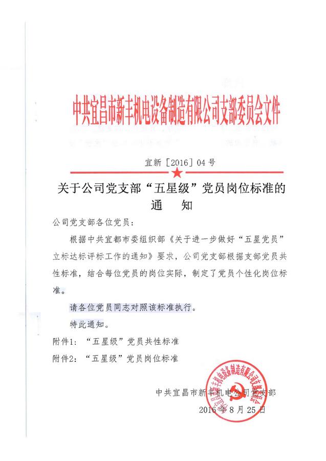 關(guān)于公司黨支部“五星級”黨員崗位標準的通知